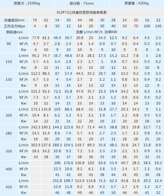 ※ 你選型時表中流量不合適,可用電磁調(diào)速,變頻調(diào)速,變換柱塞直徑來調(diào)節(jié)流量,滿足選型需要。